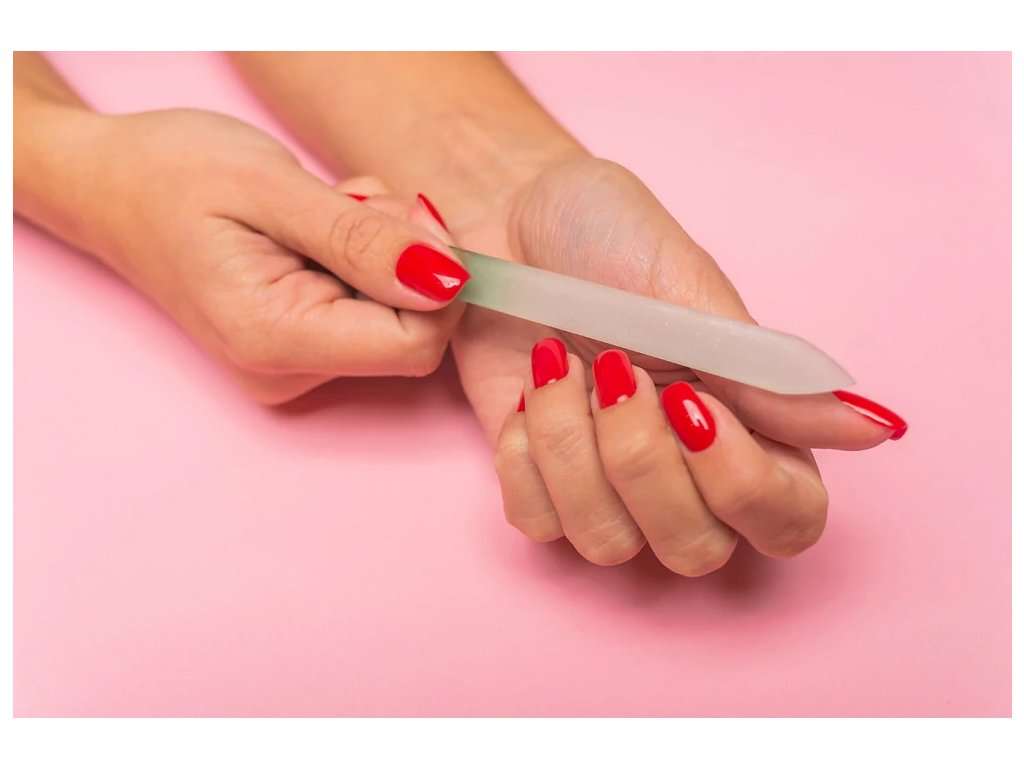 - Vyrovnání nehtu - použijte jemnější stranu pilníku