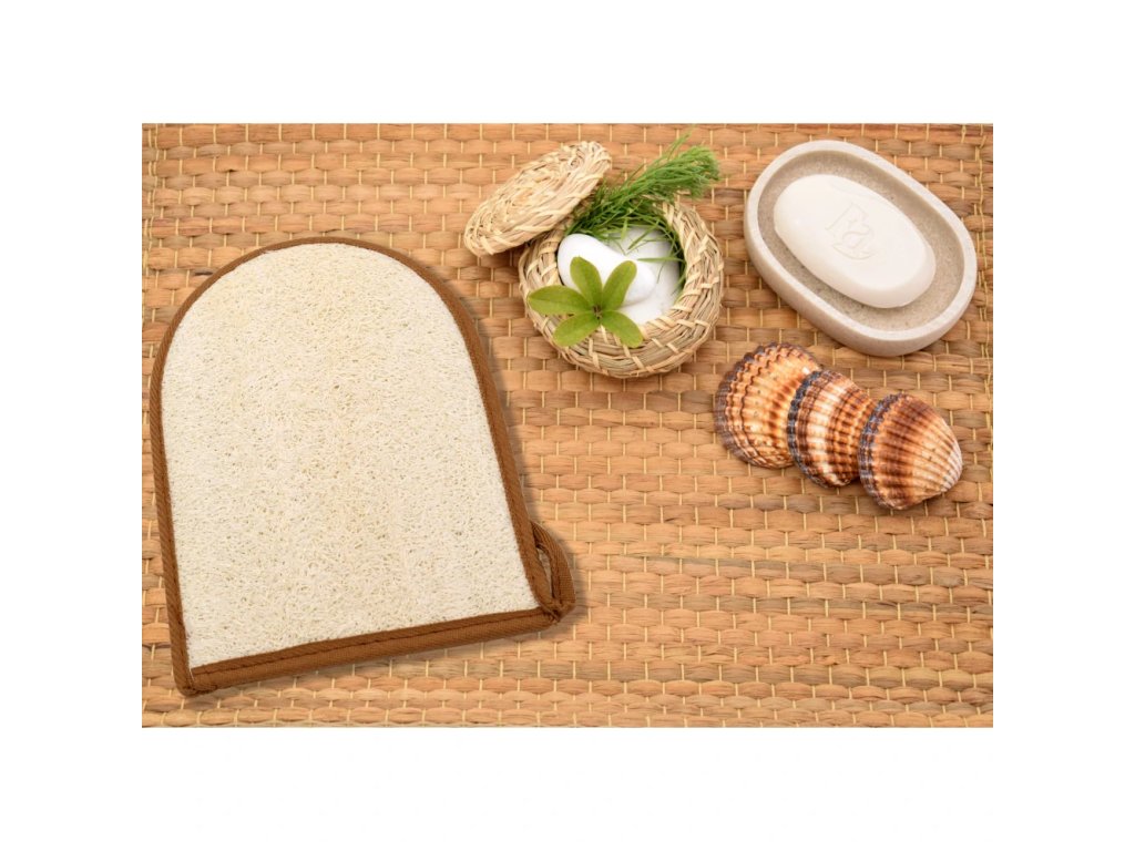 Masážní rukavice s lufou odstraňuje odumřelé buňky, nečistoty a mastnotu