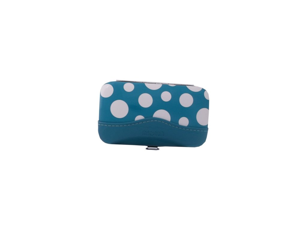 Sada je uložena v pevném, designovém pouzdře se vzorem bílých puntíků – spojení krásy a praktičnosti.
