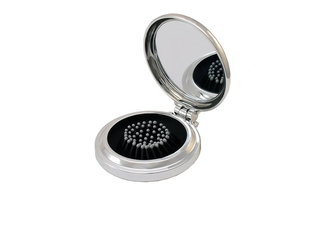 MAGNUM kartáč na vlasy se zrcátkem, skládací - stříbrná barva