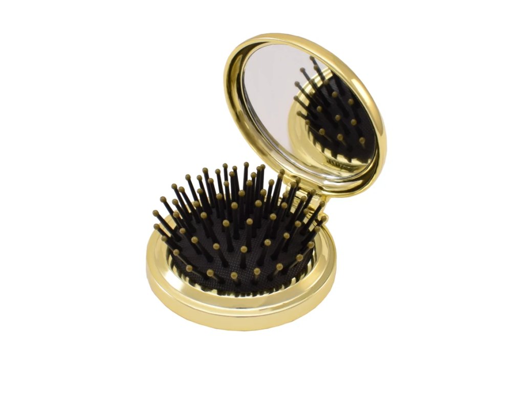 MAGNUM kartáč na vlasy se zrcátkem, skládací - zlatá barva